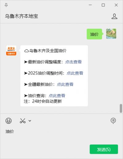 温馨提示:微信搜索公众号【乌鲁木齐本地宝】,关注后在对话框回复【油价】可获新疆/全国各大城市油价、涨幅趋势、油价调整时间及计算加油费用等内容